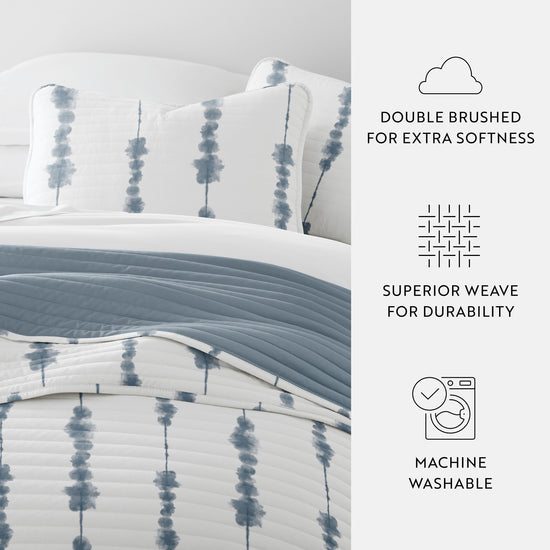 Shibori Quilt Set with Shams Reversible  DuskblueShibori Quilt Set with Shams Reversible  DuskblueShibori Quilt Set with Shams Reversible  Duskblue